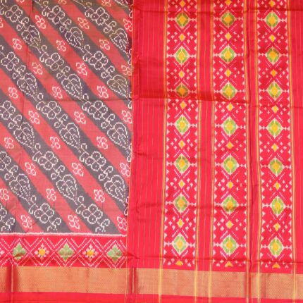 Candy Apple Red & Gray Pochampally Saree