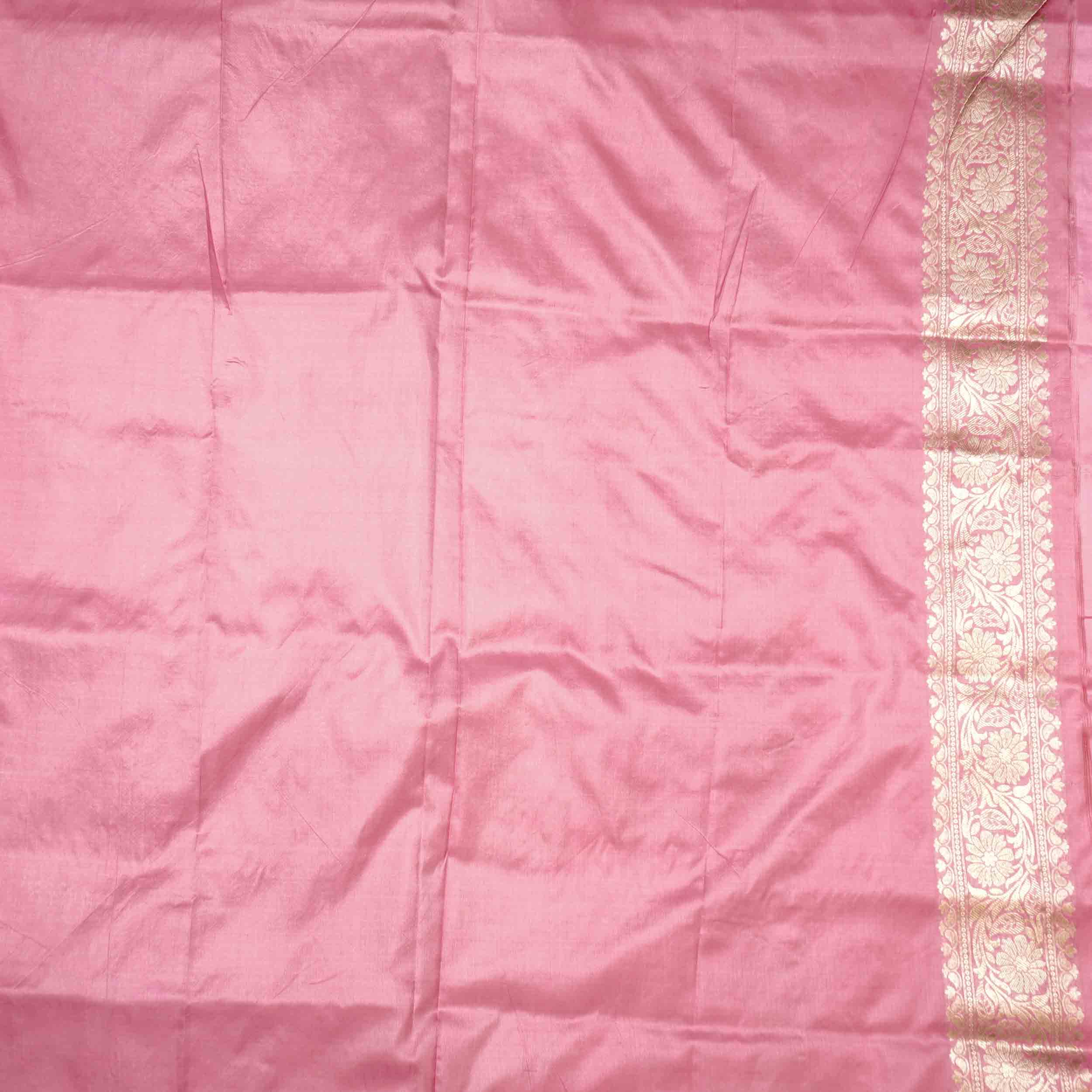 Adorn yourself in the soft pastel charm of a baby pink Banaras pattu saree. Finely woven zari motifs on lustrous silk make it ideal for weddings and festivities.