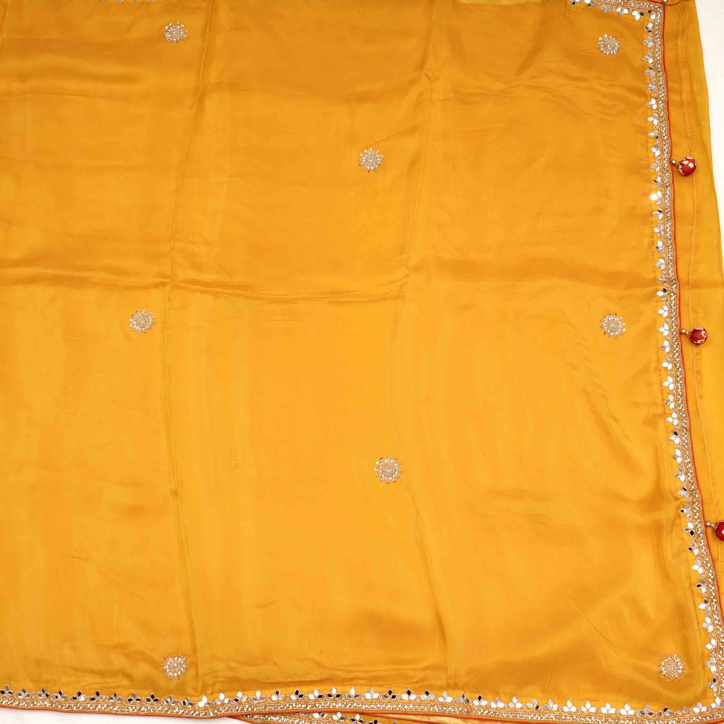 Embrace sunshine radiance with our bright yellow designer saree. Luxurious embroidery and sparkling sequins add joy and elegance to your special moments.