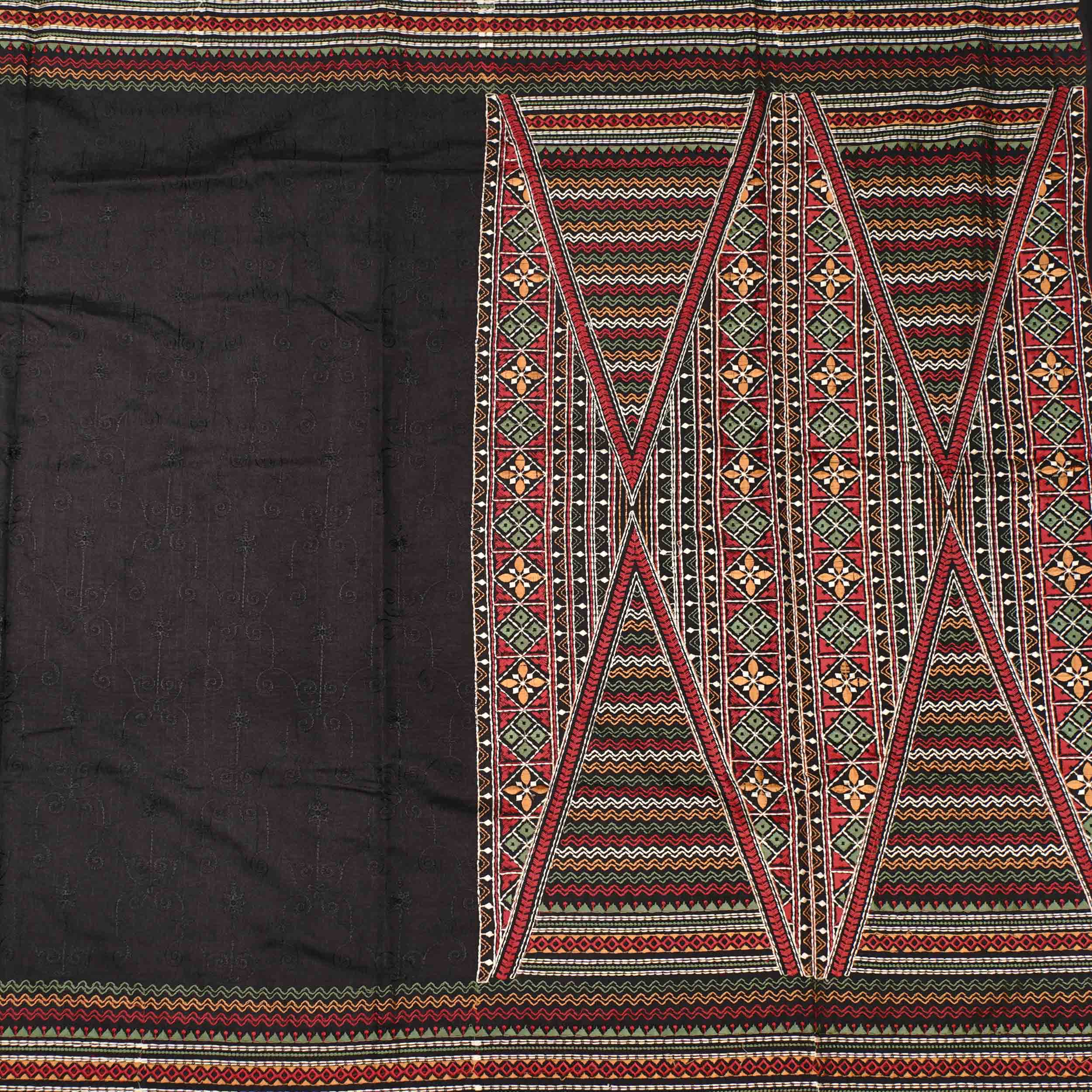 Complete deep black fancy work saree set with matching blouse piece. Exquisite craftsmanship for your most important occasions. Fast delivery India!
