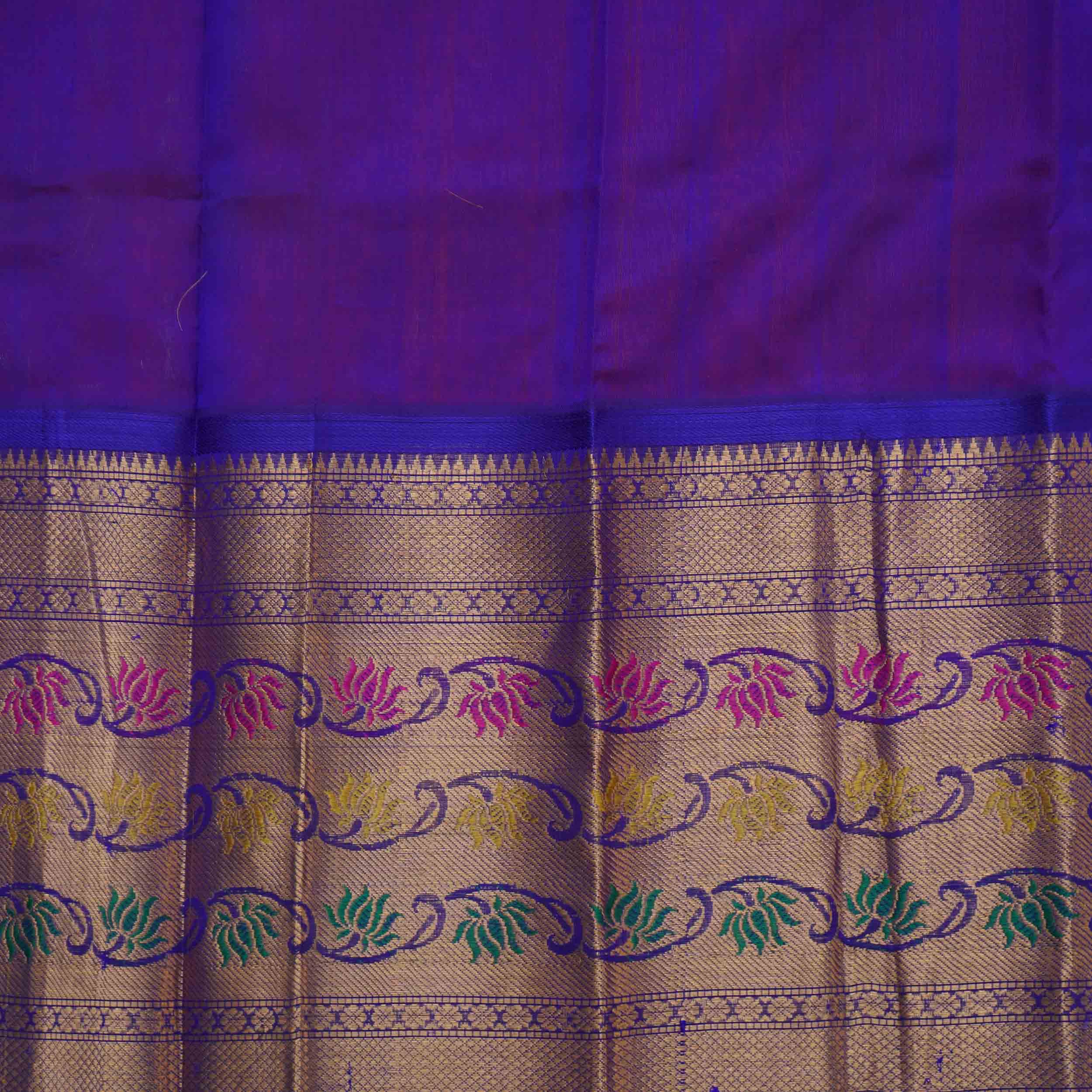 Vibrant Gate Bridge Orange Kuppadam Pattu Saree with a striking Golden Zari Long Border. Perfect for adding a rich, traditional touch to your special occasions. Explore the unique design today!