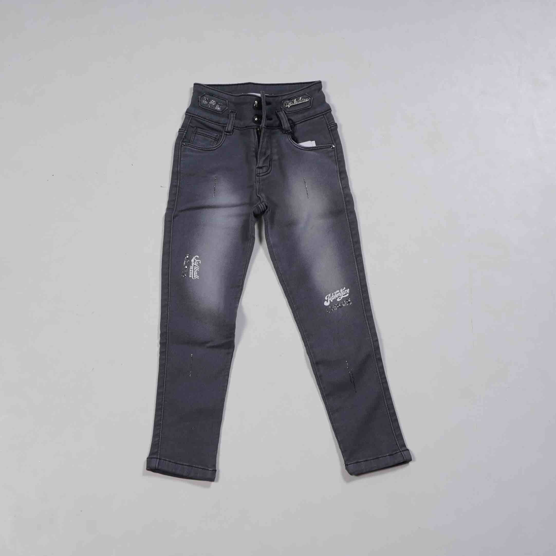 Edgy stone-wash grey jeans for girls, featuring distressed details and a relaxed fit. Ideal for casual outings or themed parties. Shop today!