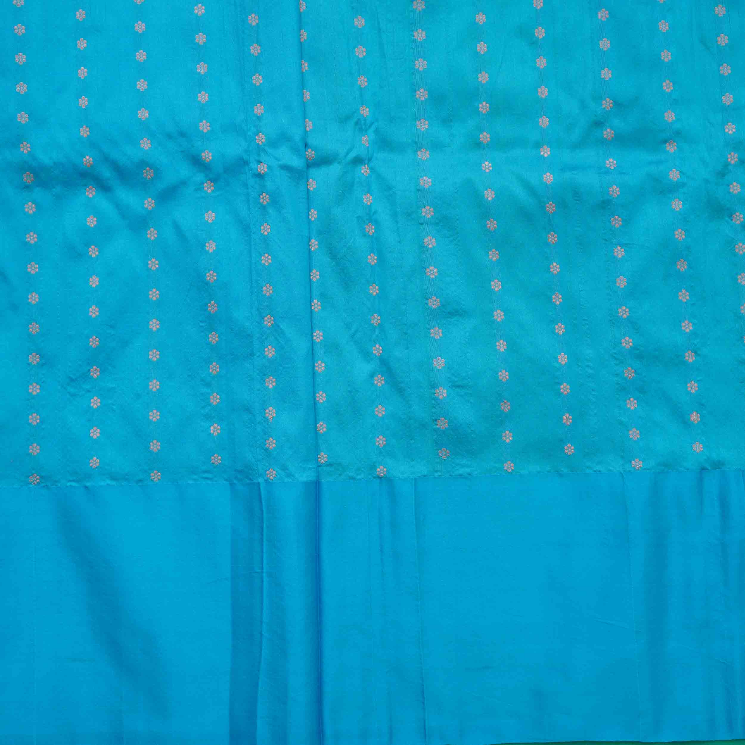 Rich Kelly Green Banarasi Pattu Saree with a contrasting Sky Blue Pallu. A vibrant choice for festive occasions. Shop now!
