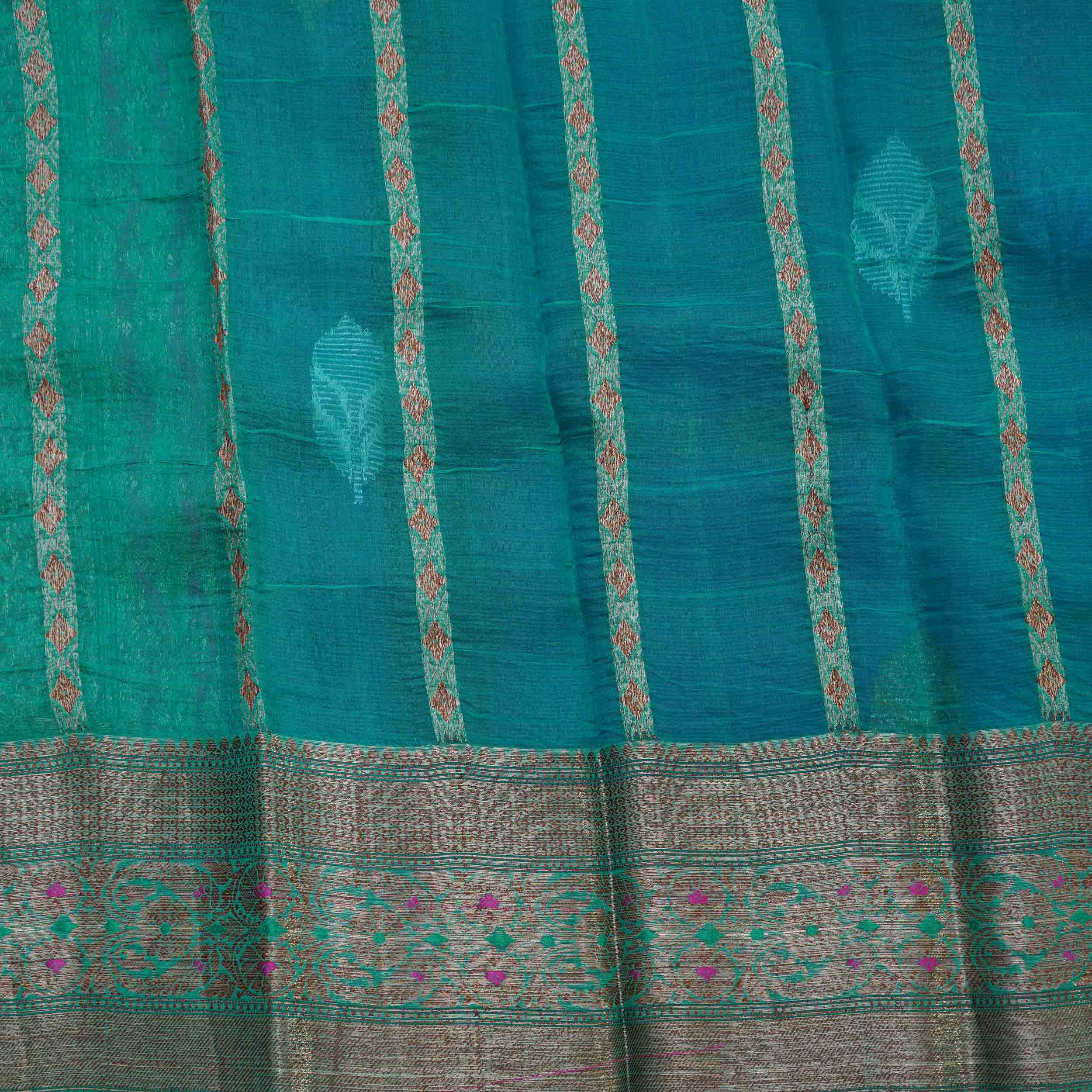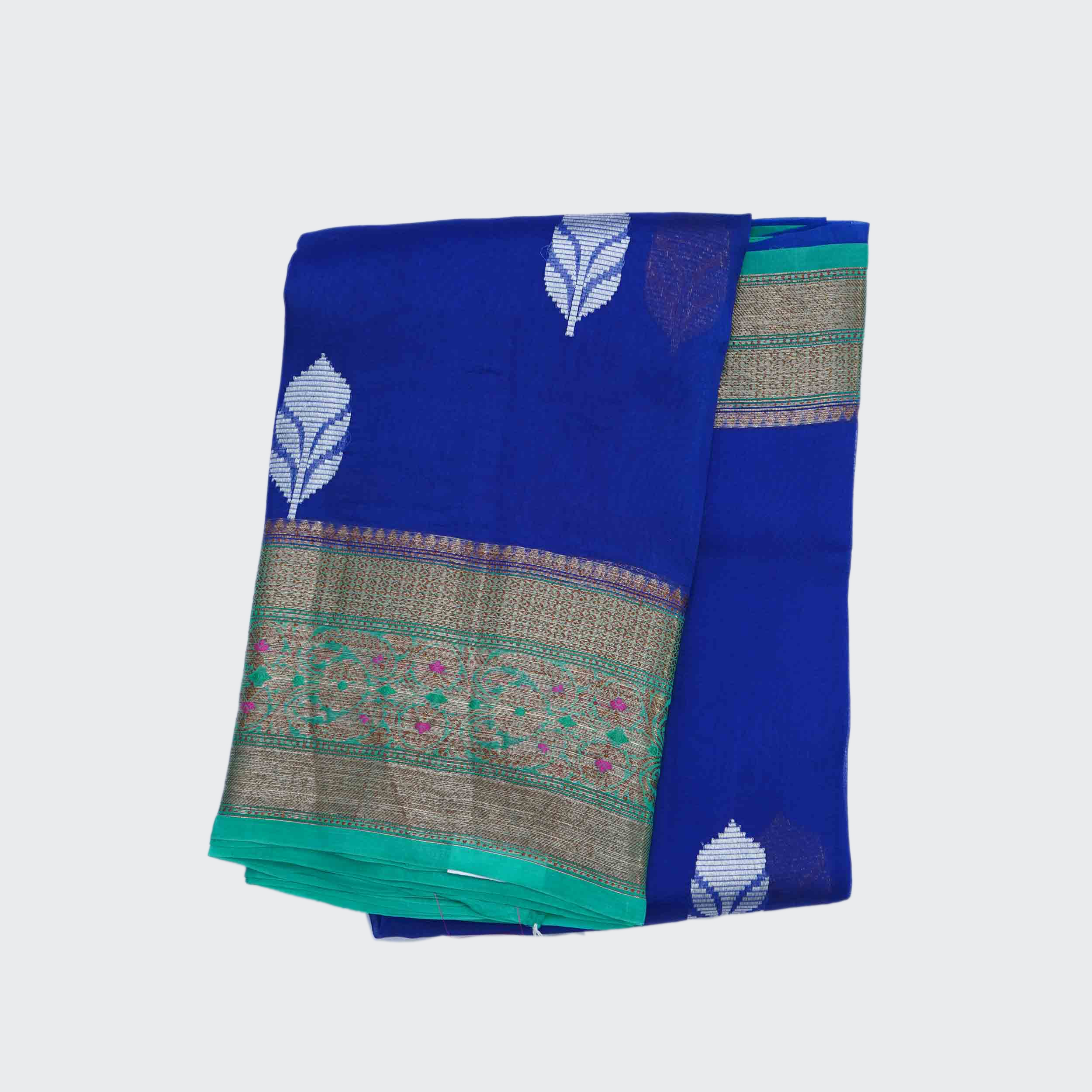 Lapis blue organza saree with metallic thread embroidery, ideal for weddings or cocktail parties. Add royal sophistication to your look – order today!