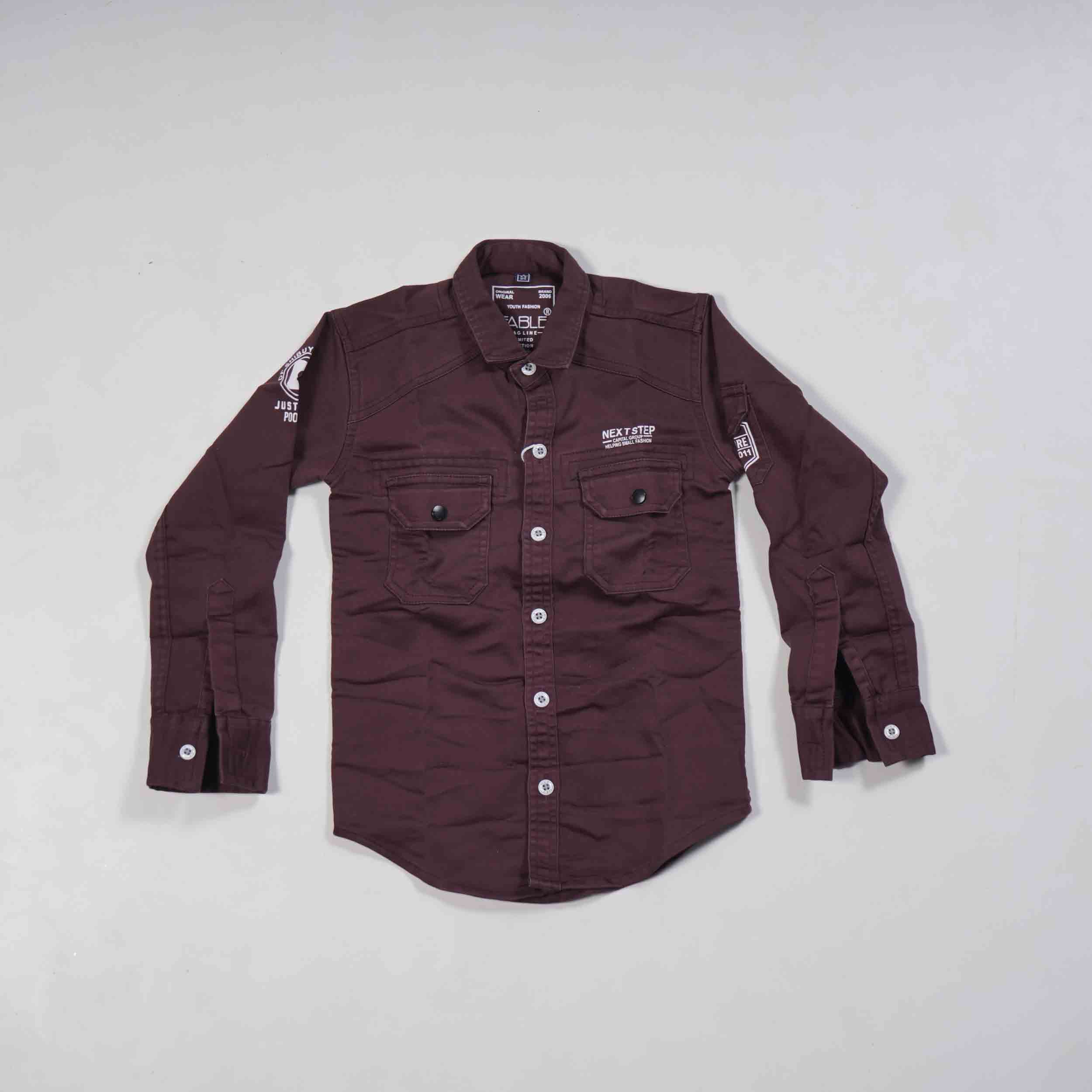 Stylish Magenta Pink Double Pocket Denim Shirt for Kids with eye-catching White Labels. Perfect for casual outings and playtime. Shop this trendy and comfortable shirt today!