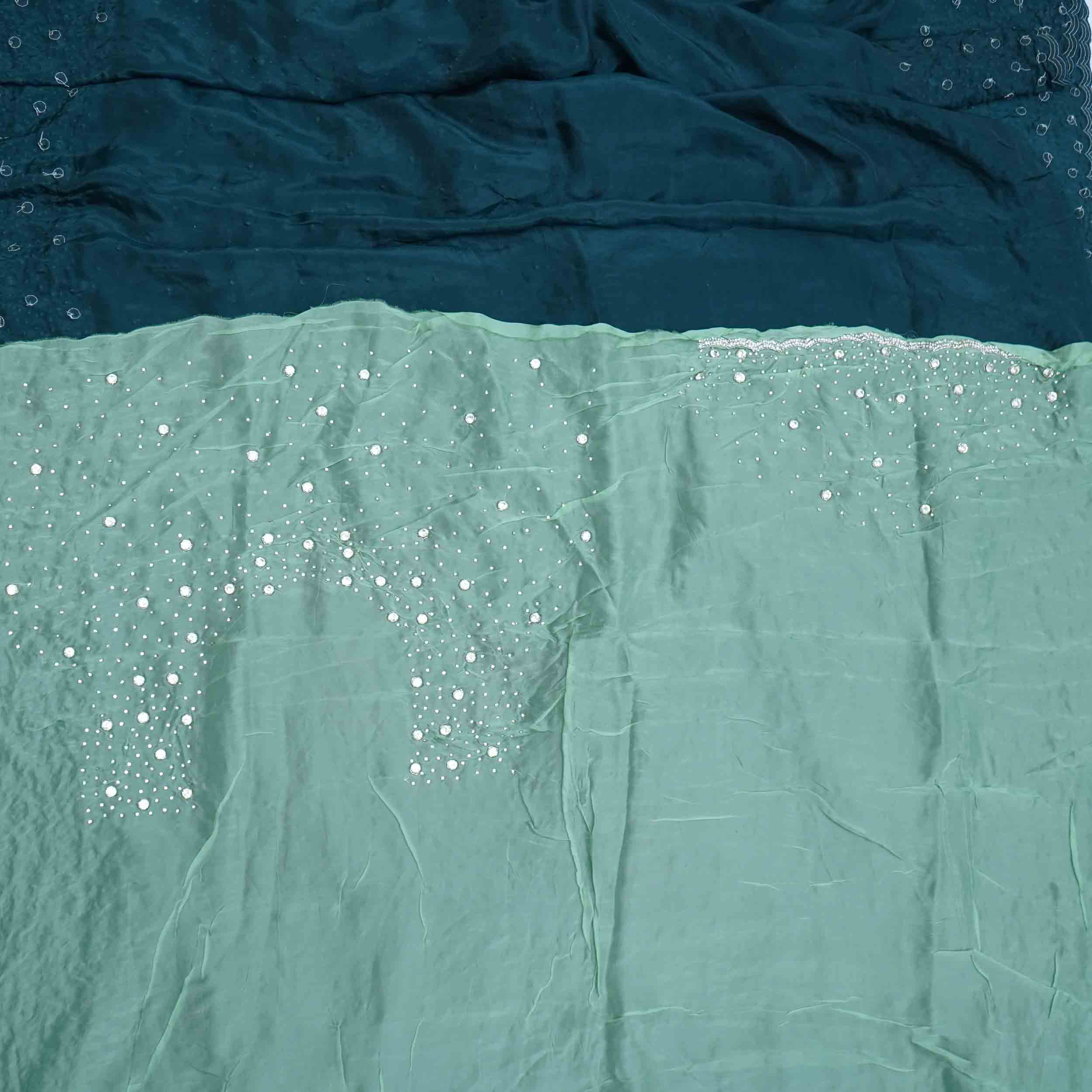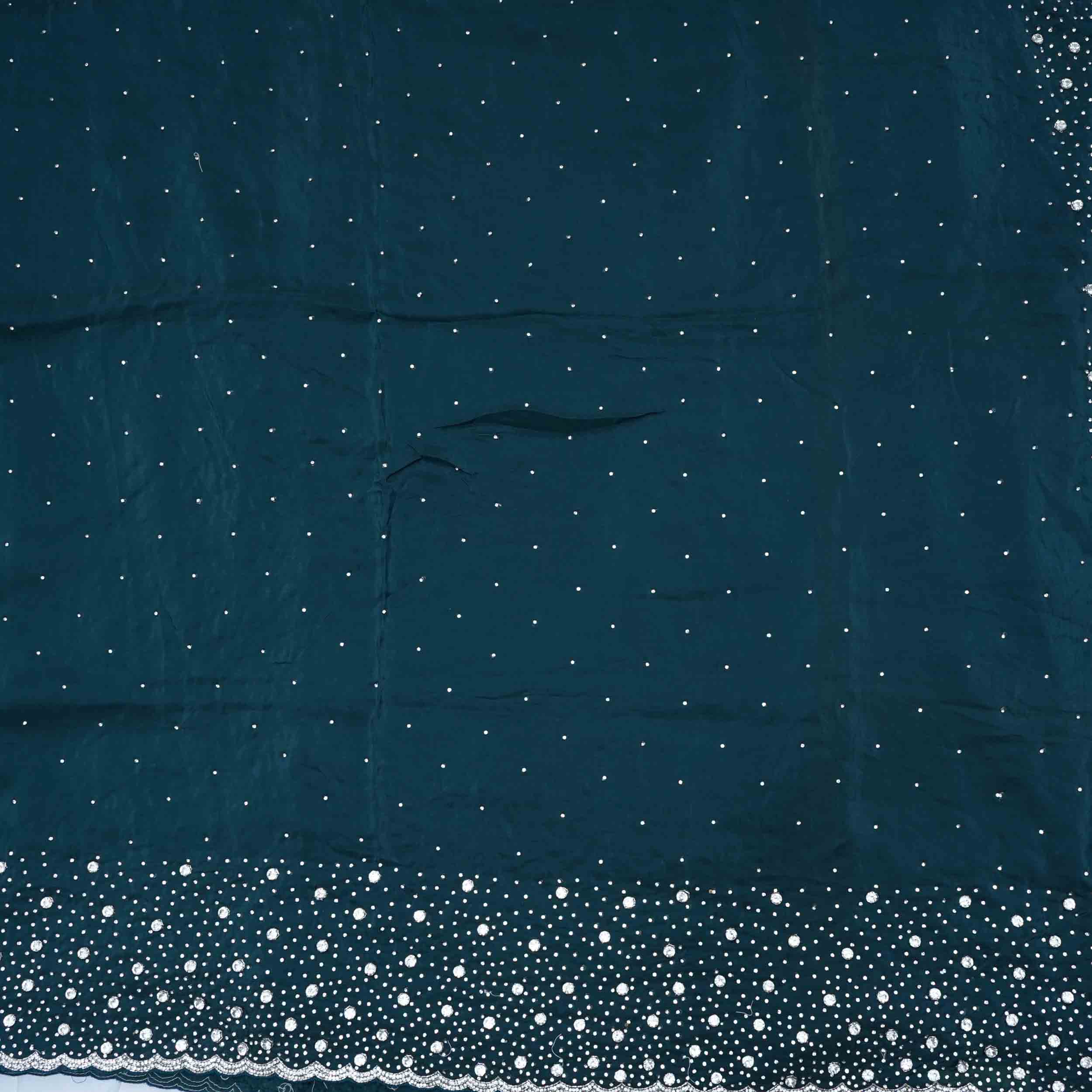 Deep Prussian Blue Fancy Work Saree, featuring detailed Floral Stone Work Design. Ideal for a sophisticated and textured appearance at celebratory events. Find this unique piece now!