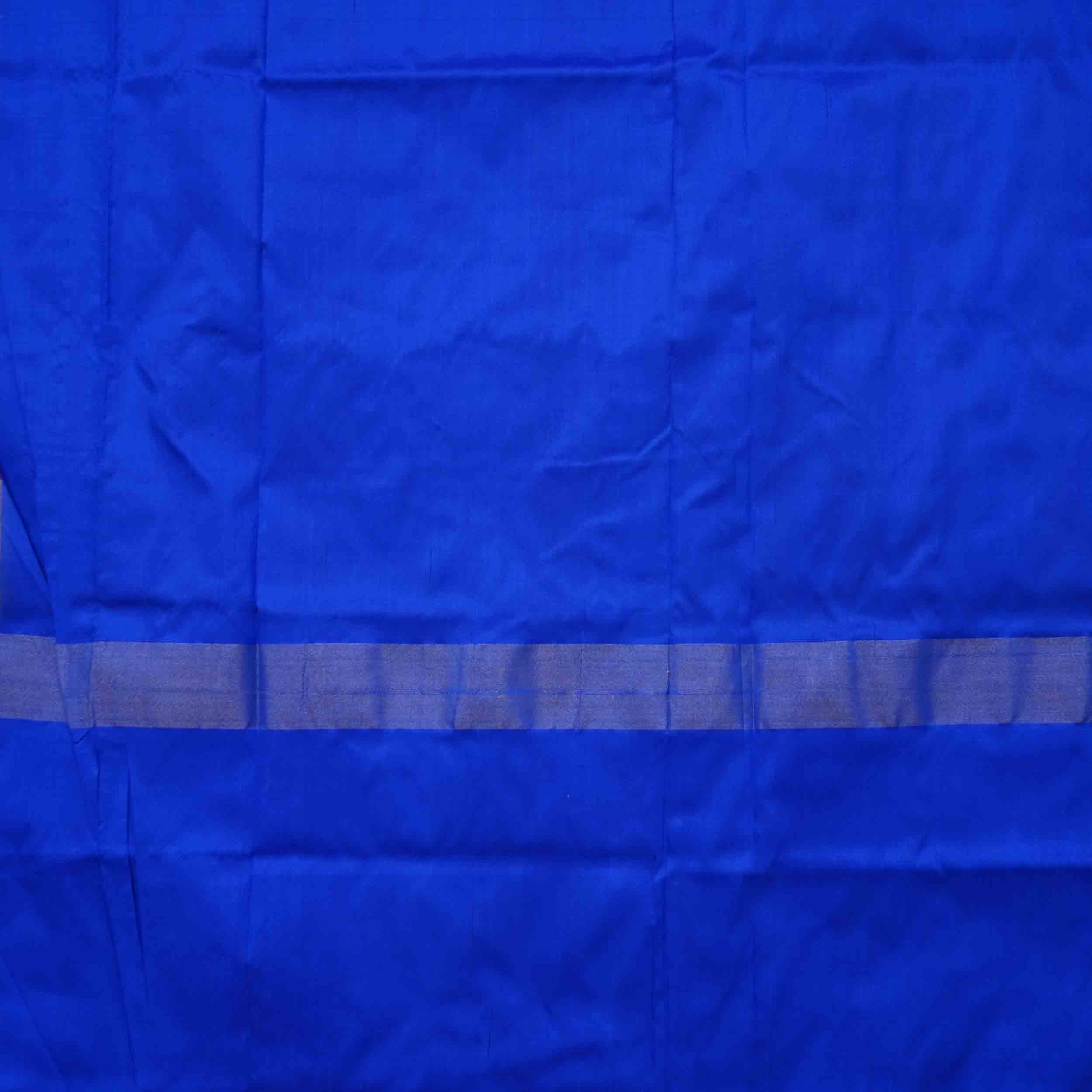 Royal blue and lime yellow Pochampally saree with geometric ikat and rich zari borders. Perfect for grand weddings. Order luxury today!