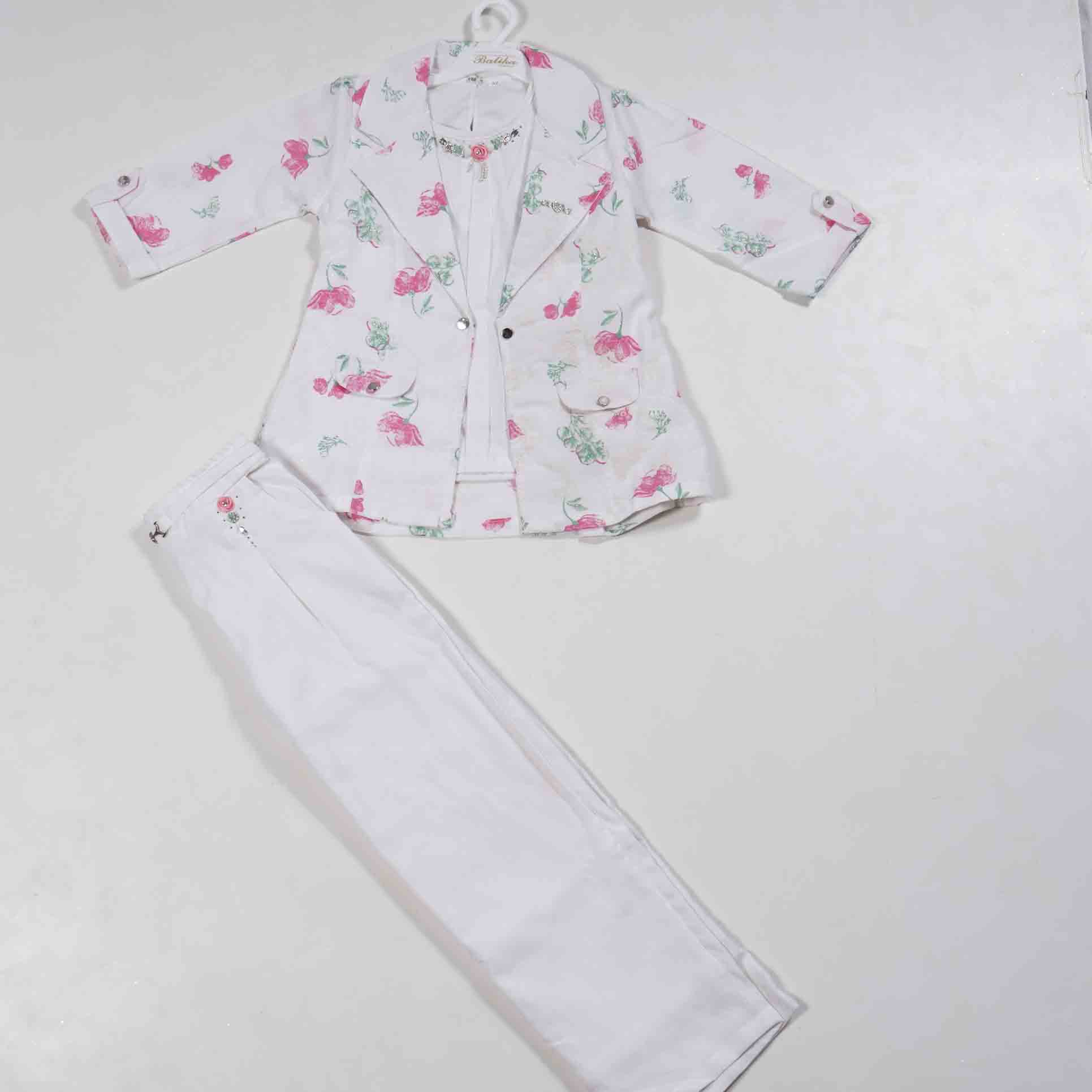 Vibrant floral coat and palazzo set for girls, featuring Western-inspired designs. Perfect for festivals, parties, or cultural events. Shop now!