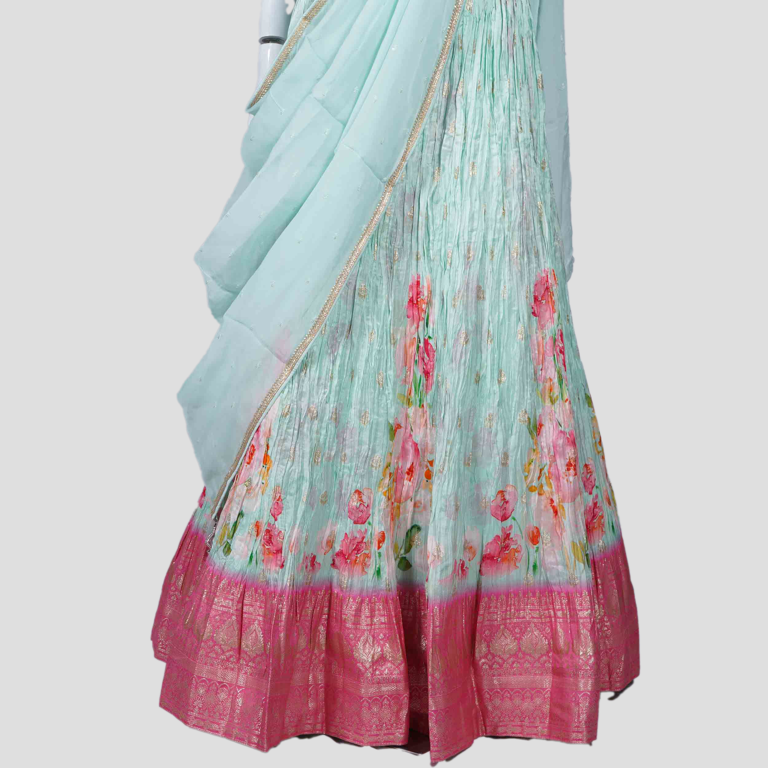 Delicate ice blue floral crop-top for brides, featuring soft embroidery and lightweight fabric. Ideal for summer weddings – shop today!