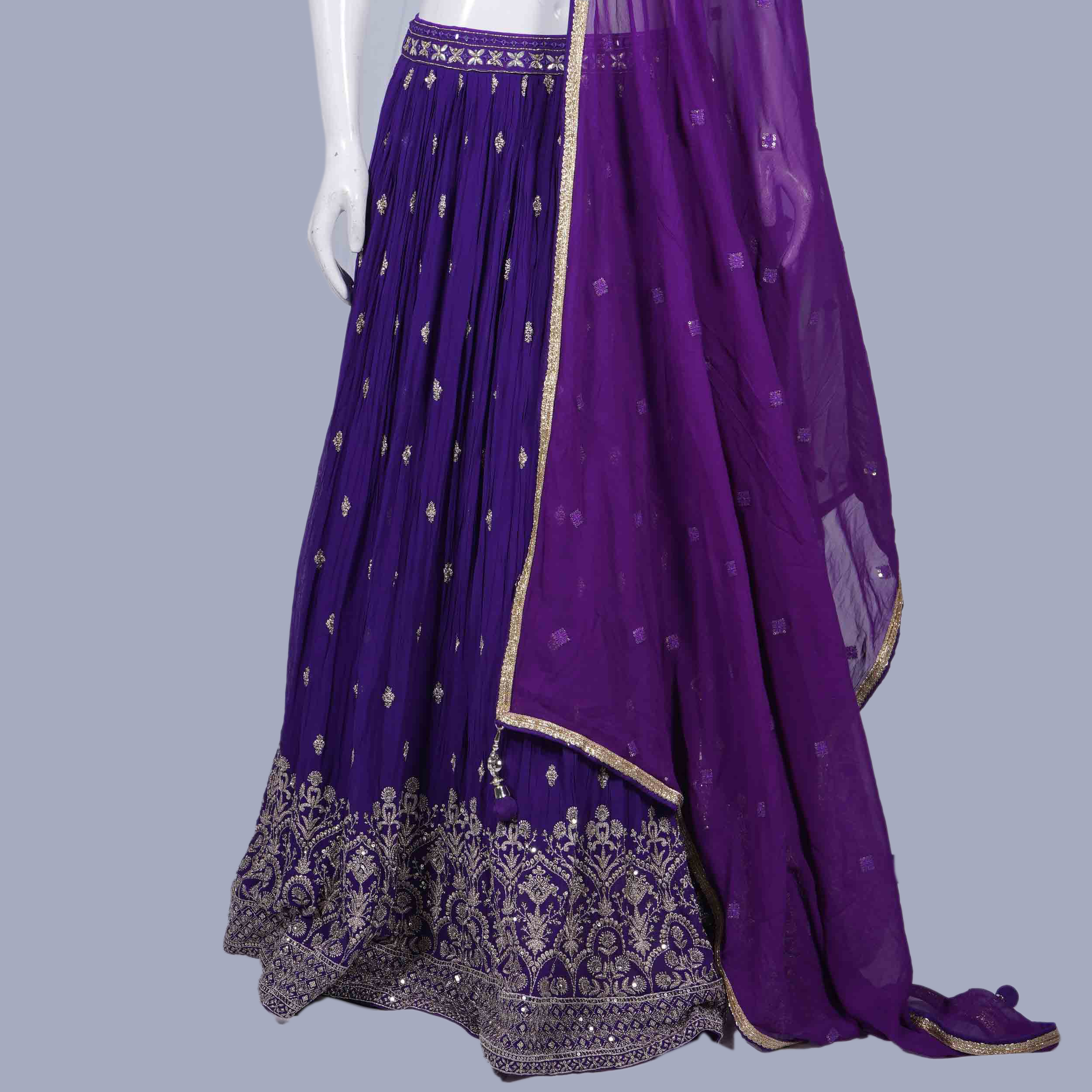 Rich indigo purple bridal crop-top with zari work, perfect for royal-themed weddings or cultural celebrations. Elevate your bridal ensemble – order now!