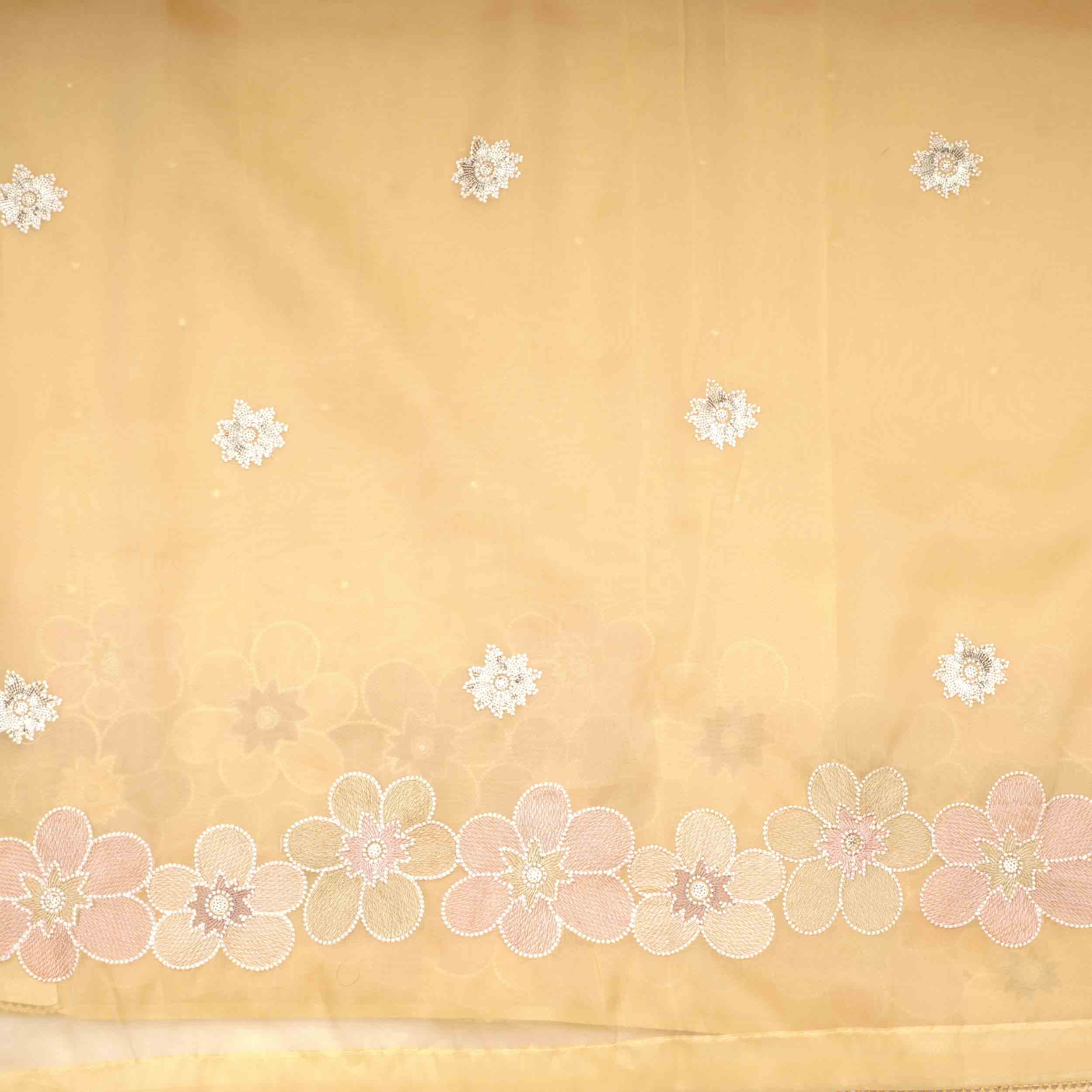 Yellow Cream Fancy Work Saree