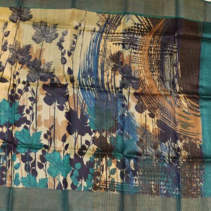 Olivine Green Tussar Slik Saree